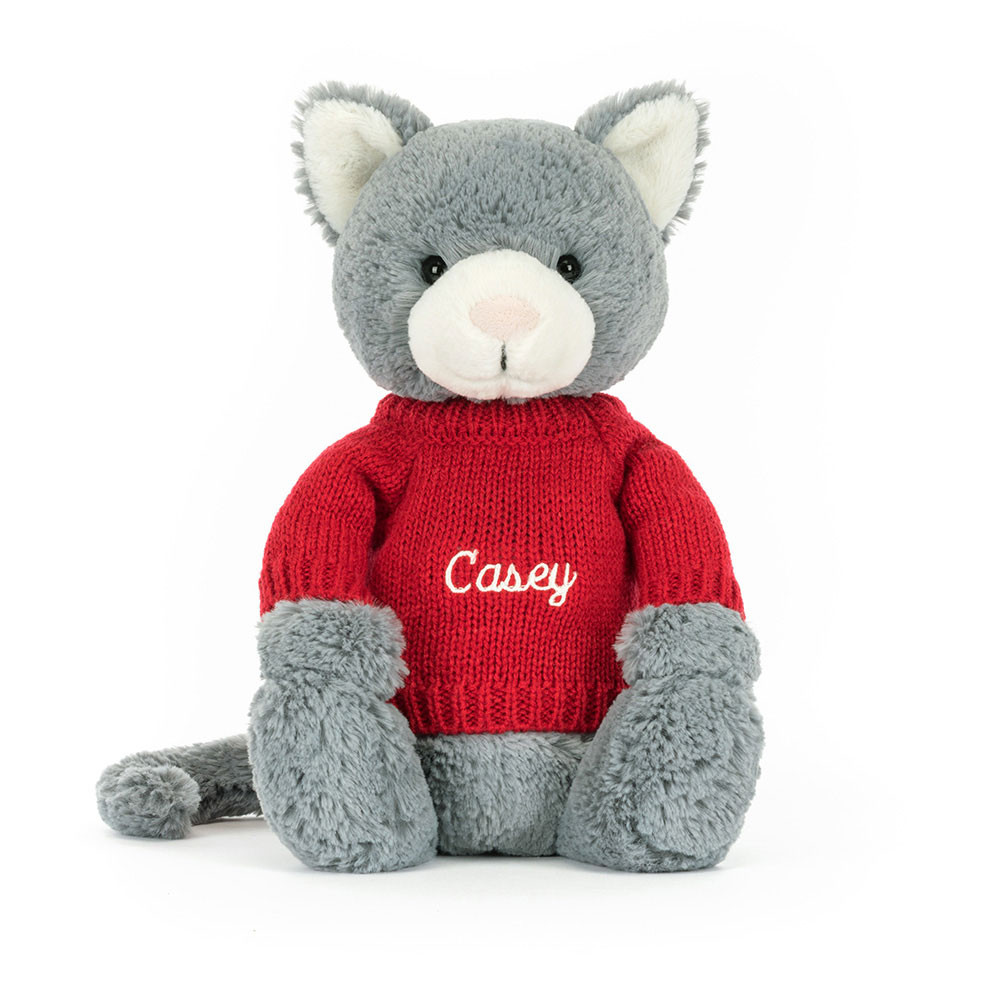 Bashful Kitten with Personalized Red Jumper