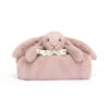 A luxurious newborn gift. the Bashful Luxe Willow Bunny Blankie is exquisitely soft in a latte hued fur. Featuring the head and paws of Willow Bunny in the corner of a silky soft blanket. Rolled and wrapped with a grosgrain ribbon and elegantly presented in a satin sheen gift box with a gold foil detail and matching gift card.